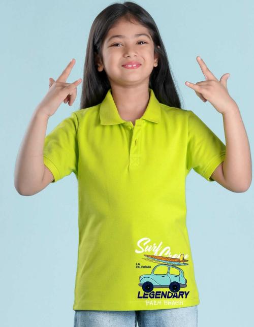 Nusyl Legendary Printed Lime green Girls Polo T-shirt
