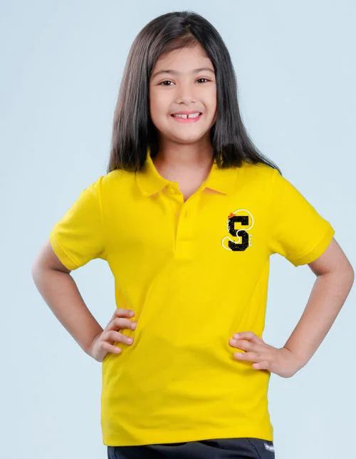 Nusyl Number 5 Printed Bright yellow Girls Polo T-shirt