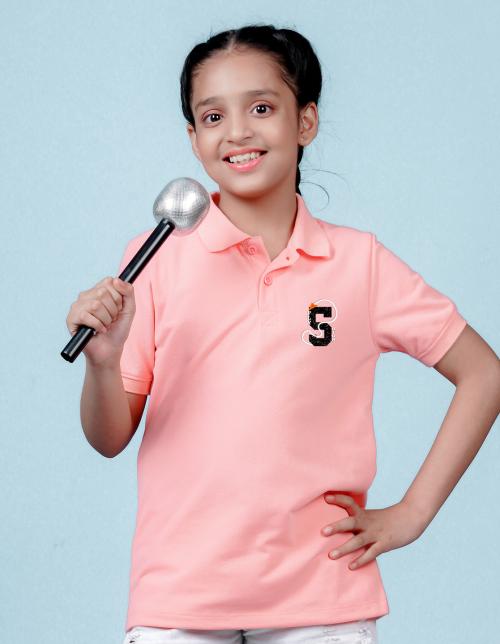 Nusyl Number 5 Printed Peach Girls Polo T-shirt