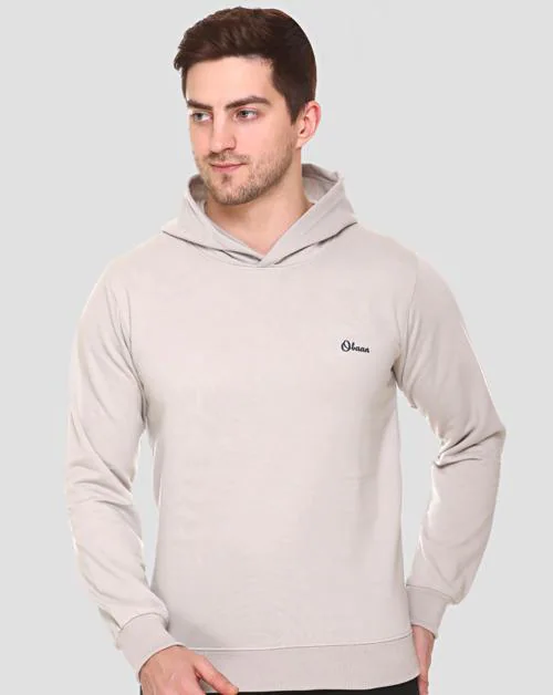 Obaan Men's Grey Full Sleeves Hooded Solid Sweatshirt