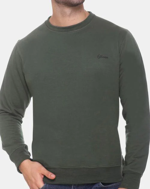 Obaan Men's Olive Full Sleeves Round Neck Solid Sweatshirt