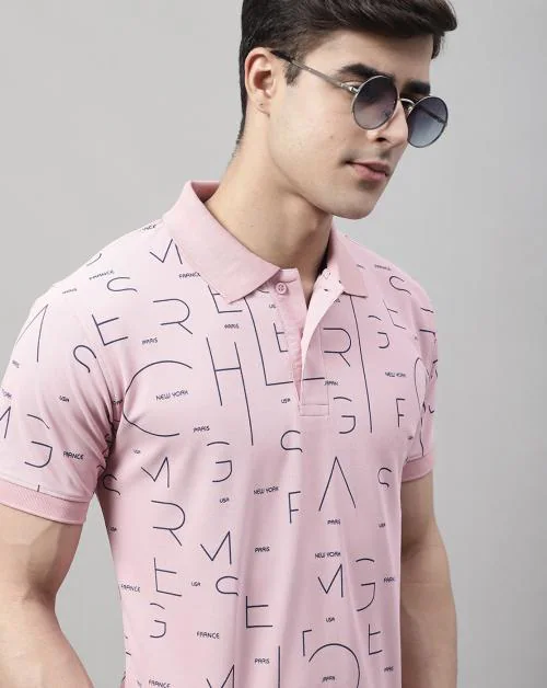 Obaan Men's Polyster Half Sleeve Printed Polo Neck T-shirt