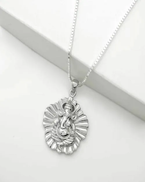 OCF RADHAMAHI Pure 925 Silver Ganesh ji with leaf Pendant with chain Rhodium Silver Pendant