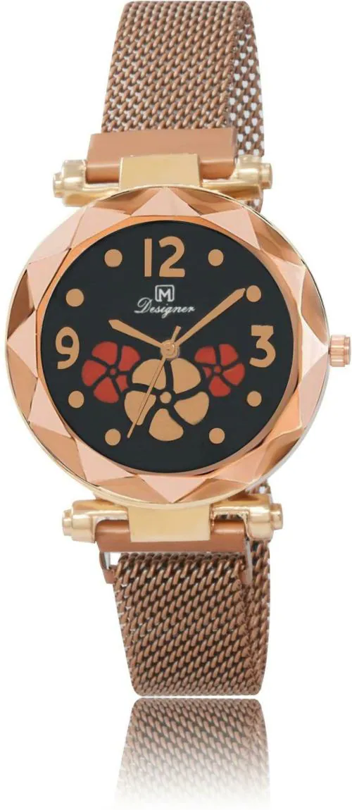 OM DESIGNER Black Dial Gold Strap Watch for Womens & Girls