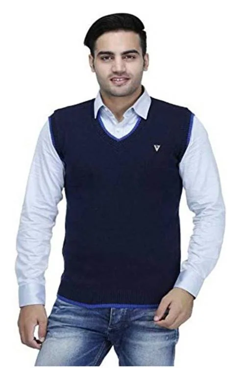 Om Designer Men's Multi colored V-Neck and Comfortable Winter wear Half Sweater for Men-Blue-XL