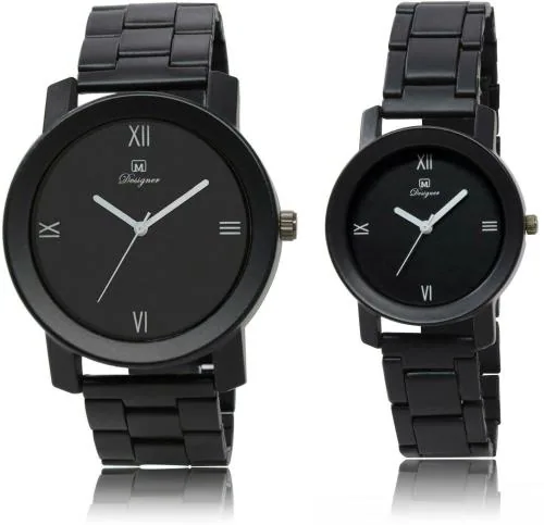 OM DESIGNER Metallic, Thick Straps Black Dial Black Strap Watch for Couples