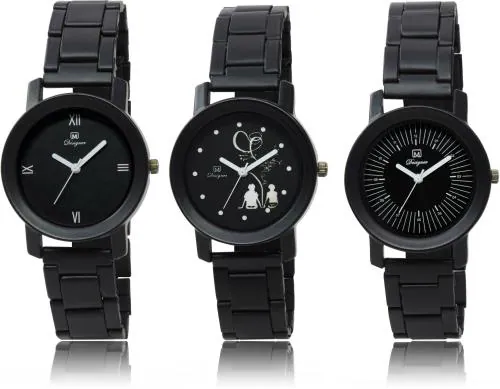 OM DESIGNER Wrist Watch Black Dial Black Strap Watch for Womens & Girls