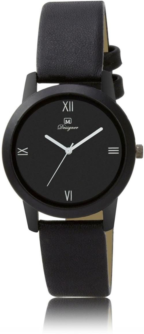 OM DESIGNER Wrist Watch Black Dial Black Strap Watch for Womens & Girls