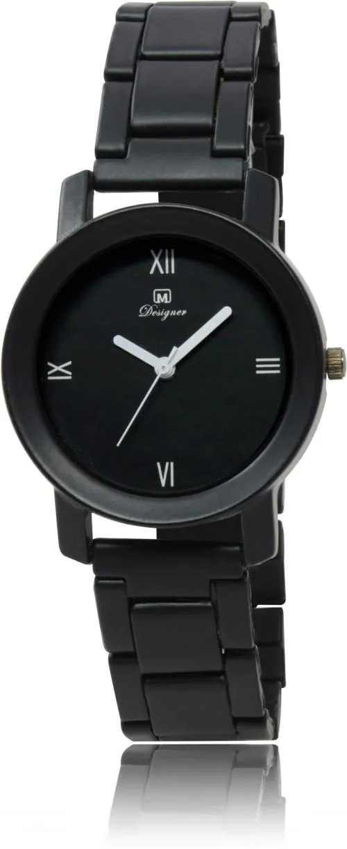 OM DESIGNER Wrist Watch Black Dial Black Strap Watch for Womens & Girls