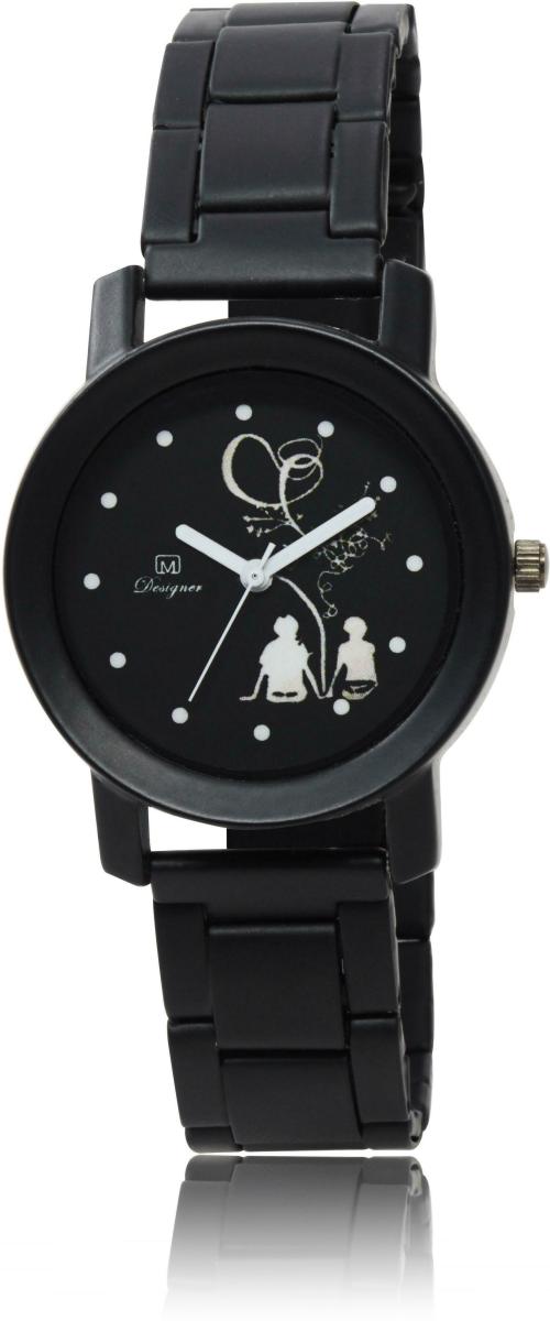 OM DESIGNER Wrist Watch Black Dial Black Strap Watch for Womens & Girls
