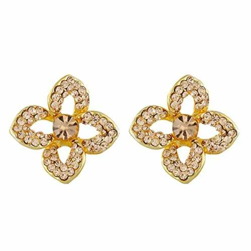 One Stop Fashion Floral Clip On Stud Earrings Beige and Gold for Girls and Women