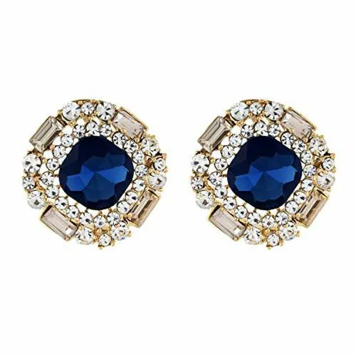 One Stop Fashion Round Stud Earring Set Blue and Gold for Girls and Women
