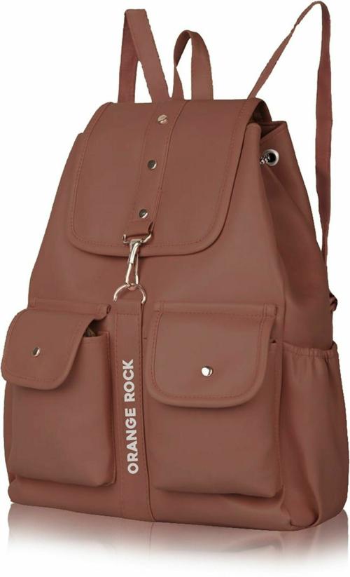 Orange Rock Brown PU Leather Collage Backpack 15 L