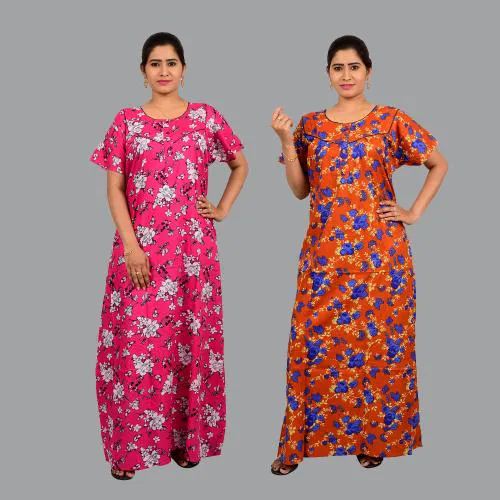 OSF Printed cotton Nighty for Ladies Nightwear Sleepwear Night Gown for Womens (Pack of 2)