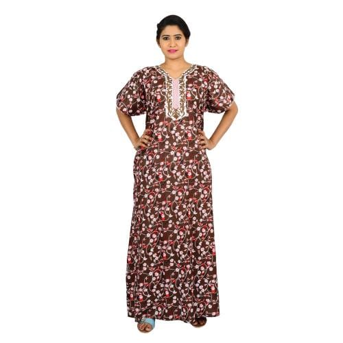 OSF Cotton Nighty Embroidery Printed for Ladies Nightwear Sleepwear Night Gown for Womens ( Pack of 1, Brown, Size: XL, NE0021_BR)
