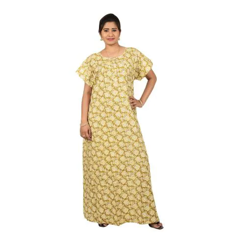 OSF Printed Cotton Nighty for Ladies Nightwear Sleepwear Night Gown for Womens ( Pack of 1, Yellow, Size: 4XL, NW0303_4XL_Y)