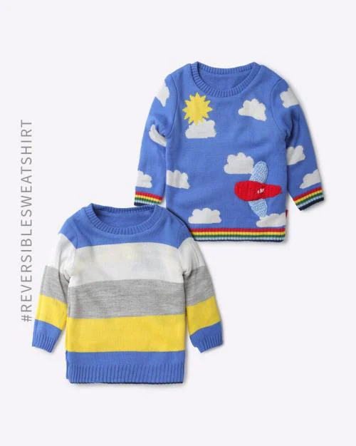 Flat Knit Round-Neck Reversible Sweaters