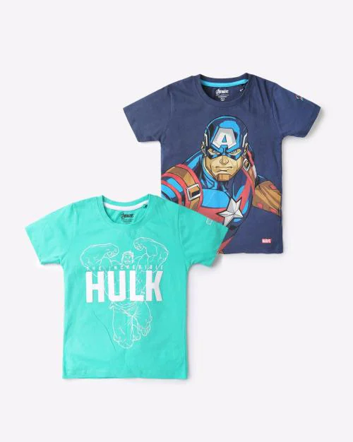 Pack of 2 Superhero Print Round-Neck T-shirts