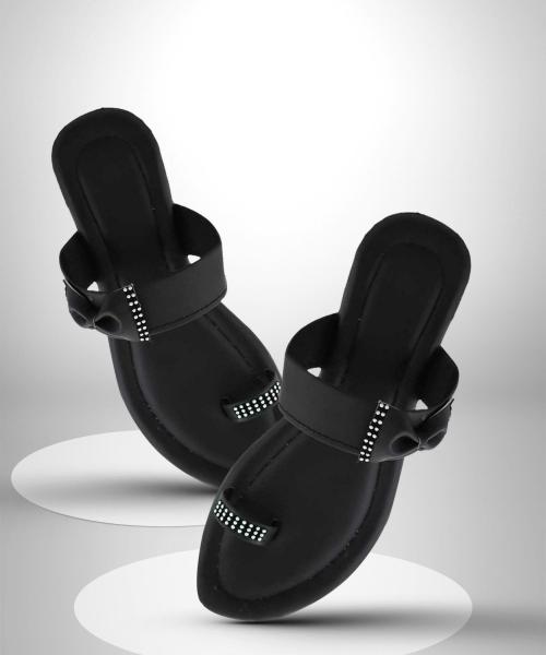 Padmaja Women Casual Flat Sandals (Black)