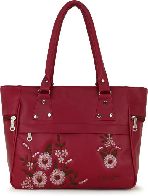 Pagwin Maroon Polyuthrane Women Handbags Flower Embroidered Fashion Satchel Bag (PG-0051-MAROON)