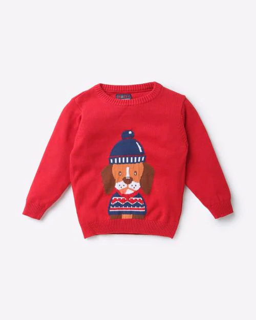 Patterned Flat-Knit Round-Neck Pullover