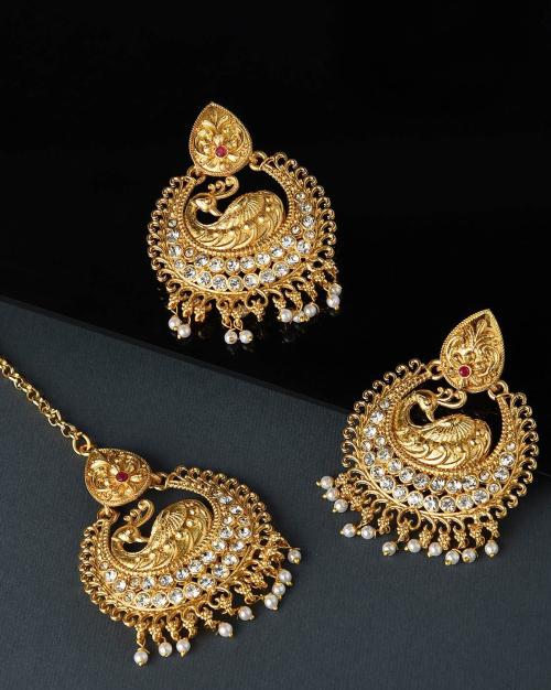 Peacock Inspired Ethnic Earrings & Mangtika Set - ZPFK11561