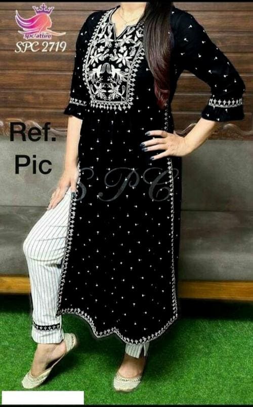 PeerShah Women's Black Embroidery Kurta With Pant Set_XL