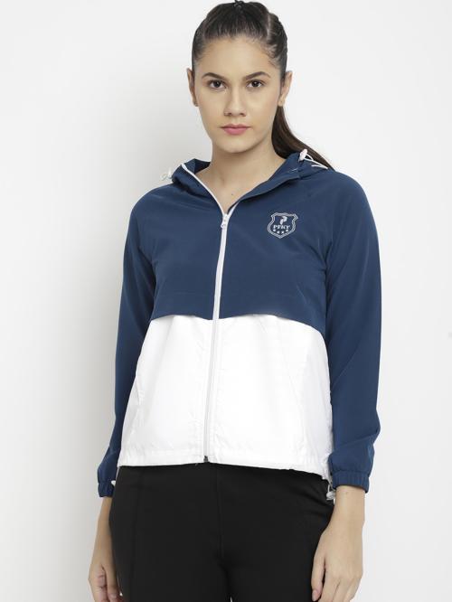 PERFKT-U Women Blue & White Colourblocked Lightweight Antimicrobial Running Sporty Jacket