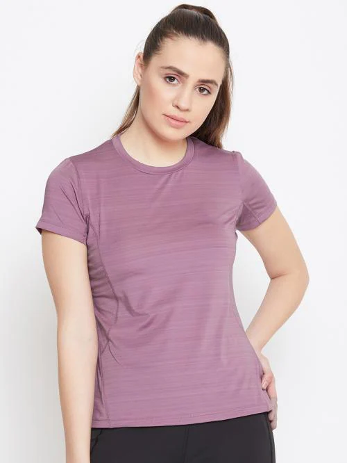 PERFKT-U Women Purple Self Design Round Neck Training T-shirt(M)