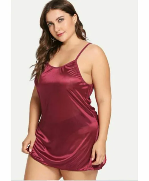 Phalin solid satin Nightwear dress (Size- Free)