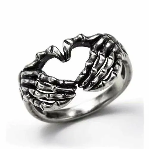 Pinapes Skeleton Hand Design Ring Set Silver Style