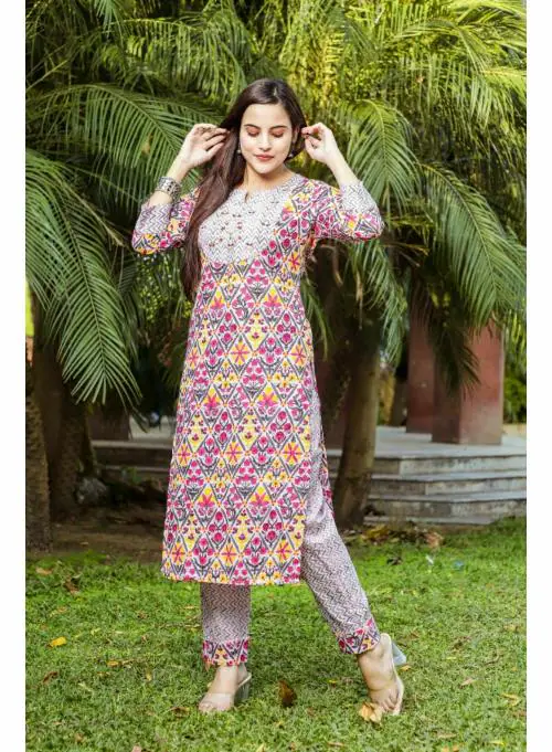 PINK EMBROIDERED COTTON KURTA WITH PANT