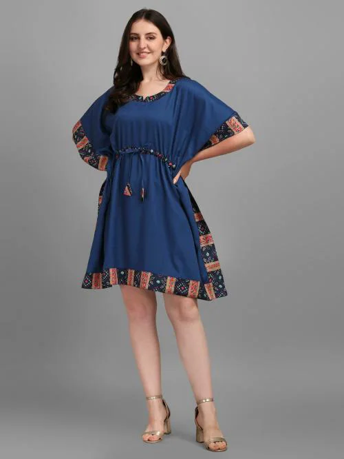 Pinpoint Seller Women Blue Printed Rayon Kaftan (XXL)