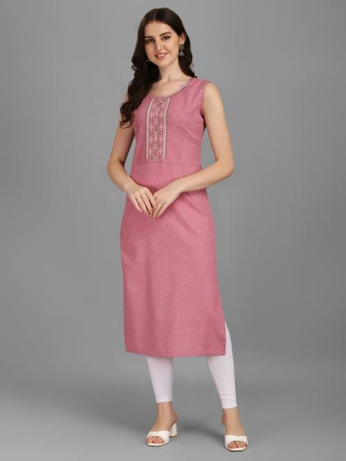 Pinpoint Seller Women Pink Applique Cotton Blend A Line Kurta (M)