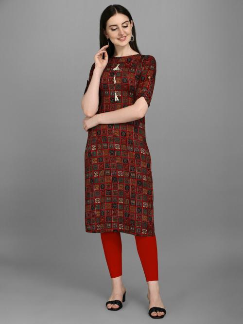 Pinpoint Seller Women Red Printed Viscose Straight Kurta (L)