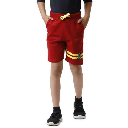 Pipin Boys Maroon Solid Cotton Shorts - 11 to 12 Years