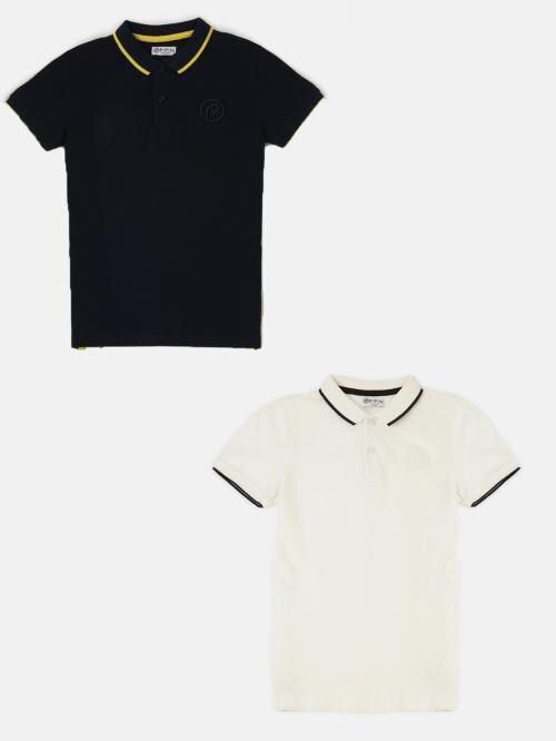 Pipin Boys Multicolor Self Design Pure Cotton Pack Of 2 T Shirt (14-15 Years)