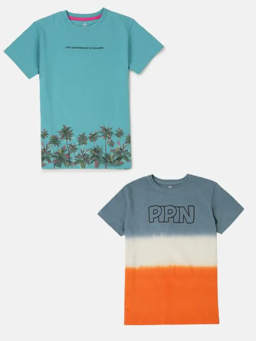 Pipin Boys Orange Printed Pure Cotton Pack Of 2 T Shirt (4-5 Years)