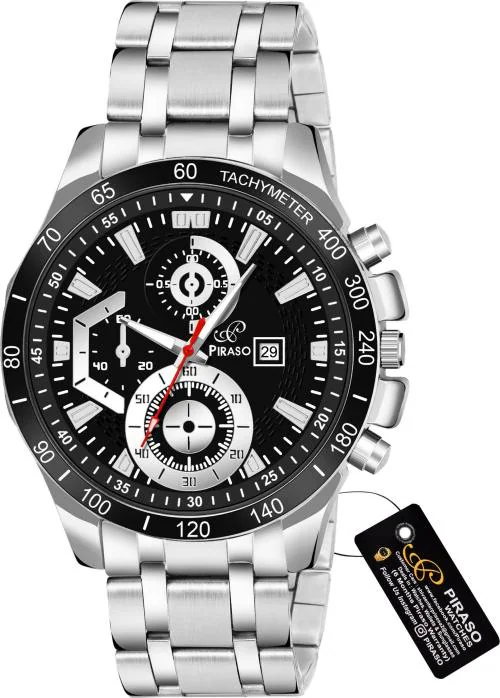 Piraso Analog Watch Date Display Black silver Dial, Silver Chain Watch For Men- RSSL EDIFICE BLACK SILVER