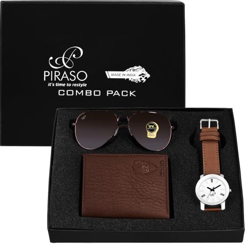 Piraso Brown Sunglasses With Wallet And Watch For Men (Combo Of 3)