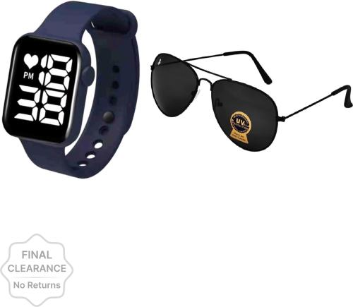 Piraso Digital Black Dial Blue Strap Watch And Sunglasses For Men And Women (Combo Of 2)
