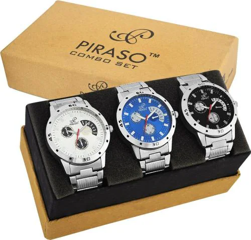 PIRASO R-series Analog Black, White and Blue Dial Silver Strap Watch for Men