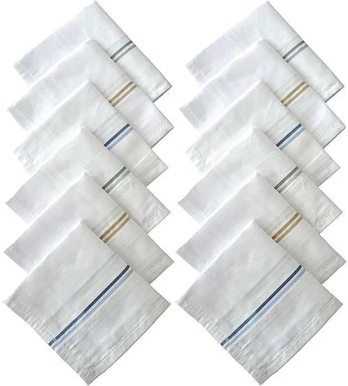 Plus Cart| WHITE HANKY| RUMAL| HANDKERCHIEF| MEN| COTTON| White Handkerchief For Men (Pack Of 12) Complete Face Cover Handkerchief Men's Cotton Striped| Comfortable and Convenient for Long Hours||XXL|KING SIZE|