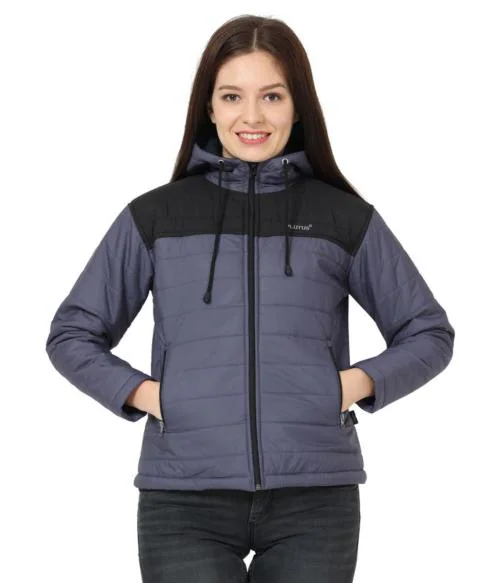 Plutus Women Grey and Black Solid Polyester Bomber Jacket