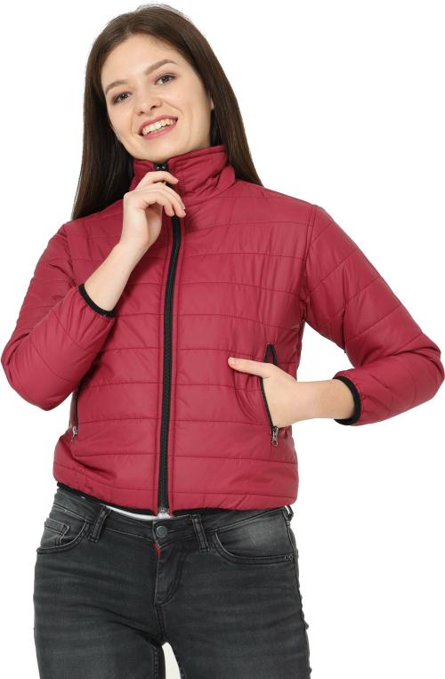 Plutus Women Maroon Solid Polyester BomberJackeTt S