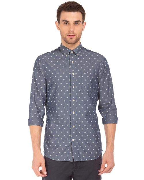 Polka-Dot Print Button Down Shirt