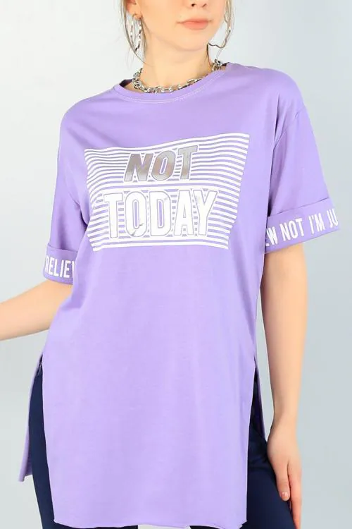 Popster Lavender Printed Cotton Round Neck Loose fit Half Sleeve Womens T-Shirt l women tshirt l tshirt for women