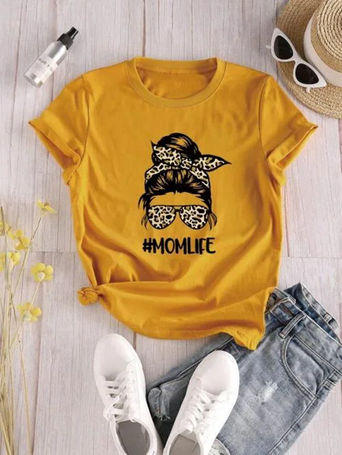 Popster Mustured Printed Cotton Round Neck Regular Fit Half Sleeve Womens T-Shirt l women tshirt l tshirt for women