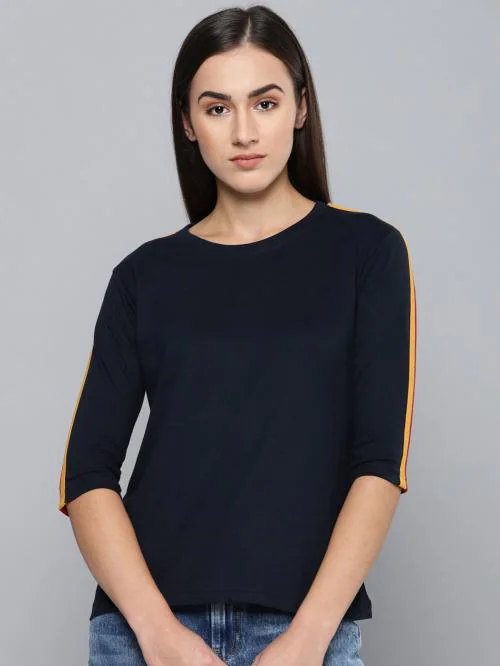 Popster Solid Cotton Round Neck Regular Fit 3/4 Sleeve Womens Tshirt Womens T-Shirt l women tshirt l tshirt for women