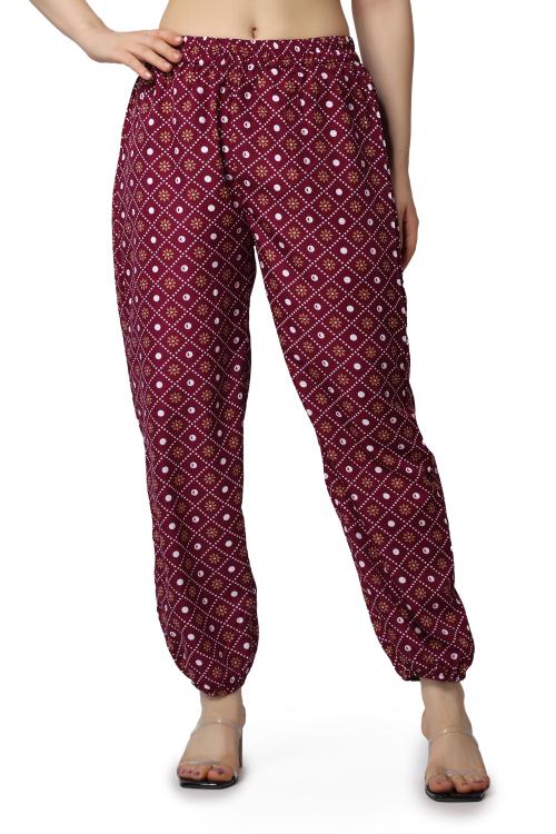 Popwings Casual Women Light Pink Geometric Printed Regular Relaxed Loose Fit Full Length Joggers